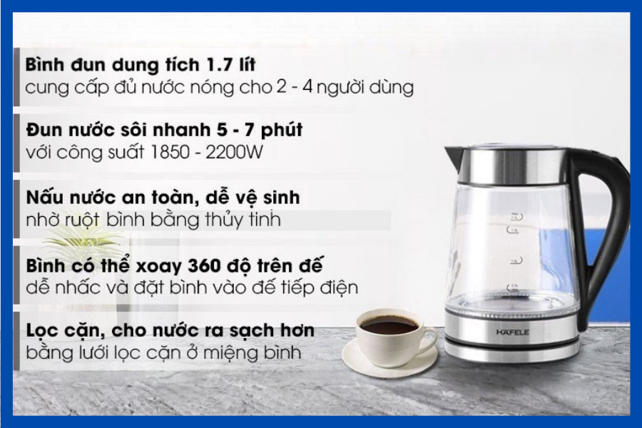 6. Đặc điểm nổi bật của Ấm siêu tốc Hafele T-602C 1,7L / 535.43.732