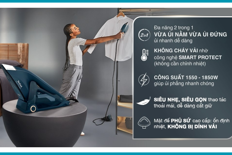 Trong bối cảnh nhịp sống ngày càng bận rộn, nhu cầu chăm sóc quần áo nhanh gọn nhưng vẫn đảm bảo tính thẩm mỹ ngày càng được quan tâm. Bàn ủi hơi nước cầm tay Tefal JF4032E0 là lựa chọn phù hợp cho những ai ưu tiên sự tiện lợi, dễ sử dụng và hiệu quả thực tế. Với thiết kế nhỏ gọn cùng khả năng tạo hơi nước ổn định, sản phẩm giúp người dùng xử lý nếp nhăn nhanh chóng mà không cần chuẩn bị nhiều dụng cụ phức tạp.
