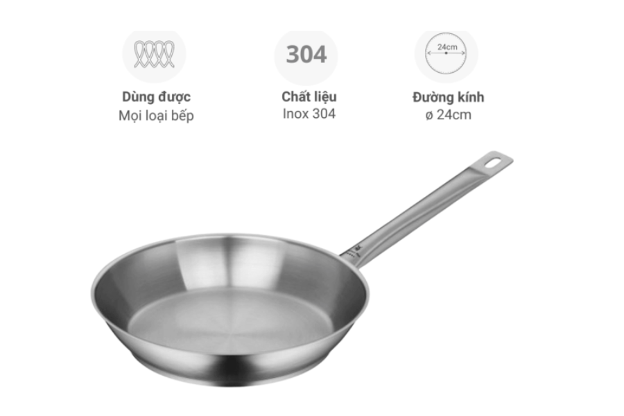 - Chảo inox WMF Gourmet Plus 24cm – 0728246031 dùng được cho mọi loại bếp, đặc biệt là bếp từ