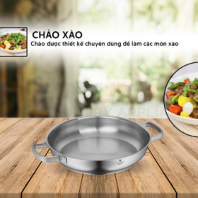 Chiếc chảo này sở hữu thiết kế tối giản nhưng vẫn rất tinh tế, phù hợp với phong cách bếp hiện đại. Bề mặt sáng bóng đặc trưng của inox không chỉ làm tăng tính thẩm mỹ mà còn dễ dàng phối hợp với các dụng cụ bếp khác. Tay cầm chắc chắn, cân đối giúp bạn thao tác an toàn và thoải mái khi nấu nướng.
