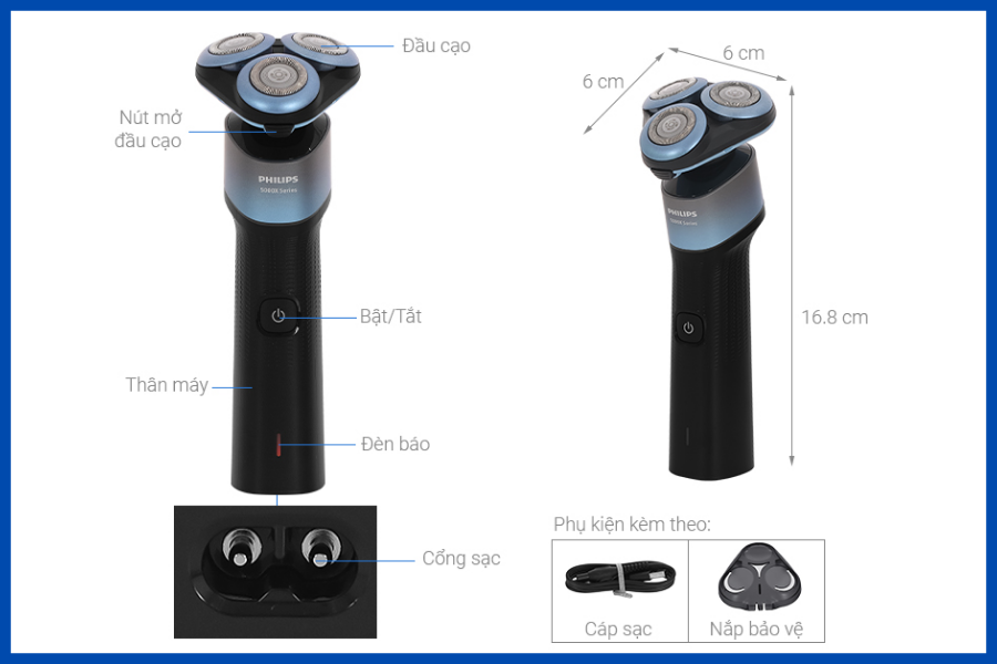 • Máy cạo râu khô và ướt Philips X5006/00 với thiết kế nhỏ gọn, cạo thoải mái và ổn định