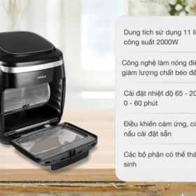 • Dung tích lớn: Với dung tích sử dụng 11 lít, nồi chiên này phù hợp cho gia đình đông thành viên hoặc khi cần chế biến lượng lớn thực phẩm.