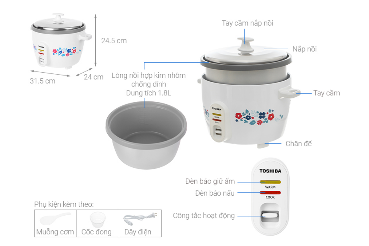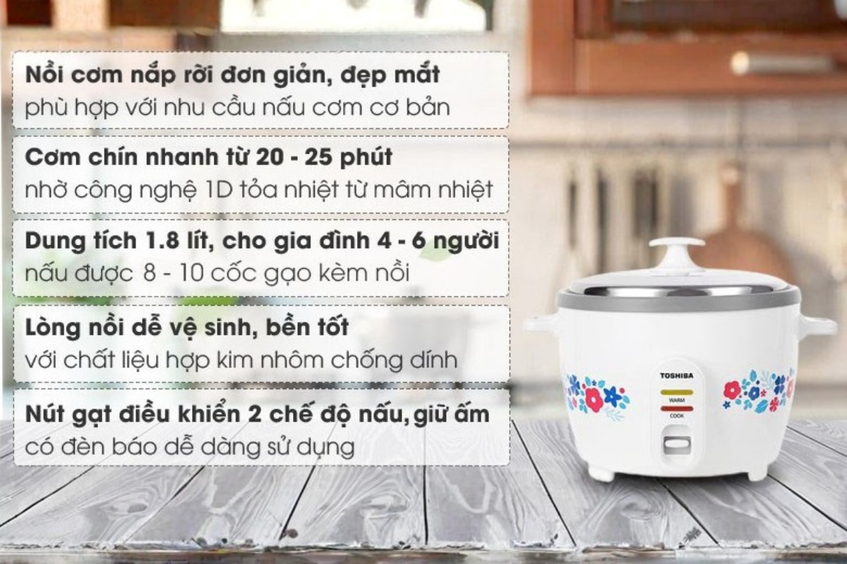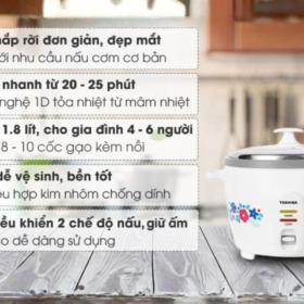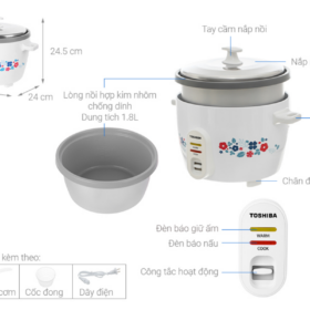 • Nồi Cơm Điện Toshiba RC-18MH2PV(F) có dung tích 1.8 lít thích hợp cho gia đình 4 – 6 người