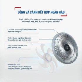 Phần lồng quạt và cánh quạt được gia công tỉ mỉ, không góc cạnh gây nguy hiểm, đảm bảo an toàn khi trong nhà có trẻ nhỏ hoặc vật nuôi.
