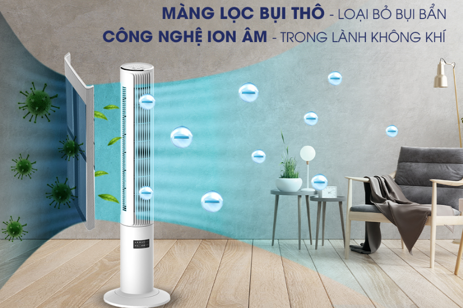 - Lọc không khí thông minh: Tích hợp màng lọc bụi thô và ion âm, giúp loại bỏ bụi bẩn, vi khuẩn, mang lại không khí trong lành.